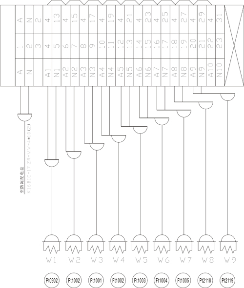 3.電纜由箱底電纜接頭引至箱內(nèi)接線端子排。(見圖4)