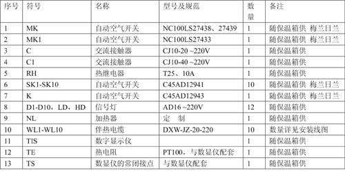 保溫箱電加熱部份主要設(shè)備表