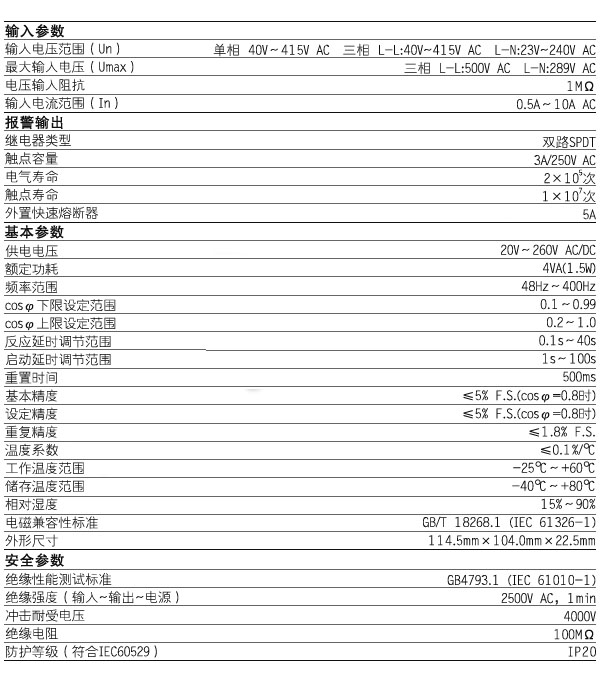 功率監(jiān)控繼電器 | ETM-PF-400 | 過載、小負載、窗口 | 單相 40~415V AC 三相 L-L:40~415V/L-N:23~240V AC 輸入電流 0.5A~10A AC | 20~260V AC/DC |