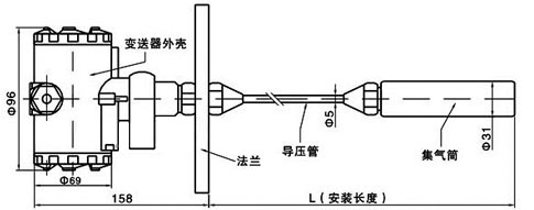 高溫導壓液位變送器(氣體導壓式,用于高溫、腐蝕性液體、污水等)的傳感器部分與信號處理電路在接線盒內部,由投入液體內的集氣筒內的氣體與介質接觸,通過導氣管將壓力傳遞給傳感器,避免了傳感器與被測介質的直接接觸,適應于高溫強腐蝕性等場合,有效地解決了高溫腐蝕液體以及污水液位測量的難題。它特別適合于高溫、腐蝕性液體和污水的測量。