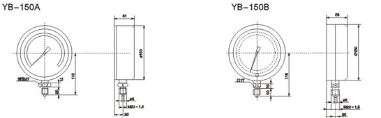 | YB-150B | 銅鉻釩鋼 | 0~1.6;0~2.5;0~4;0~6;0~10;0~16;0~25;0~40;0~60 | 0.25 | 鏡面調零 |