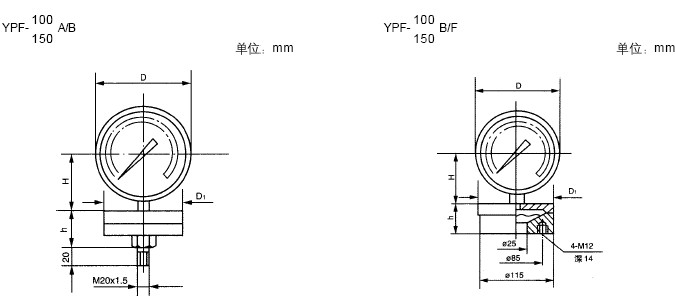 | YPF-100A | 0~0.06;0~0.1;0~0.16;0~0.25;0~0.4; 0~0.6;0~1.0;0~1.6;0~2.5; -0.1~0;-0.1~0.06;-0.1~0.15; -0.1~0.3; -0.1~0.5;-0.1~0.9;-0.1~1.5; -0.1~2.4MPa | φ85 |