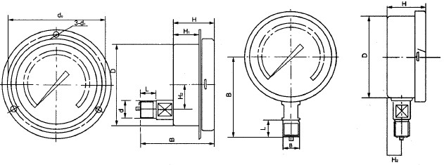 儀表由導壓系統(包括接頭、彈簧管、限流螺釘等)、齒輪傳動機構、示數裝置(指針與度盤)和外殼(包括表殼、表蓋、表玻璃等)所組成。外殼為氣密型結構,能有效地保護內部機件免受環境影響和污穢侵入。對于在外殼內充液(一般為硅油或甘油)的儀表,能夠抗工作環境振動較劇和減少介質壓力的脈動影響。