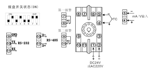 | 08 | Pt100 | -200~650℃ | 16 | 0~20mA | -1999~9999 |