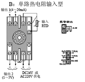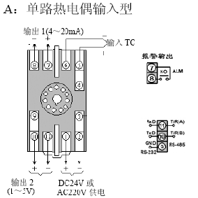 S分度號(hào)熱電偶輸入,第一路輸出4-20mA,第二路輸出1-5mA,兩路輸出不隔離,AC220V供電