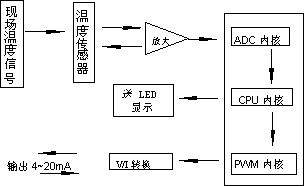 儀表通過溫度傳感器把溫度信號(hào)變?yōu)殡娦盘?hào),再由前置放大器把此電信號(hào)放大濾波,送往CPU的A/D