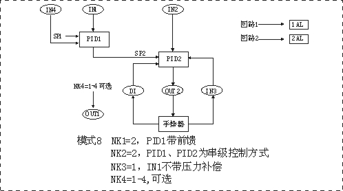 WP-KS805系列雙回路串級(jí)智能PID調(diào)節(jié)控制儀,具有5個(gè)模擬輸入(IN1-IN5)2個(gè)模擬輸出(OUT1、OUT2),一個(gè)開(kāi)關(guān)量輸入DI,2個(gè)開(kāi)關(guān)量輸出和豐富的控制算法,適用于鍋爐汽包水位三沖量控制或兩沖量控制并可帶汽包水位壓力補(bǔ)償功能適用于一般工業(yè)過(guò)程中溫度、壓力、液位、流量等各種過(guò)程參數(shù)的串級(jí)控制,前饋控制、雙路控制等,并可帶后備操作器,與后備控制器配套實(shí)現(xiàn)手動(dòng)/自動(dòng)無(wú)擾切換。