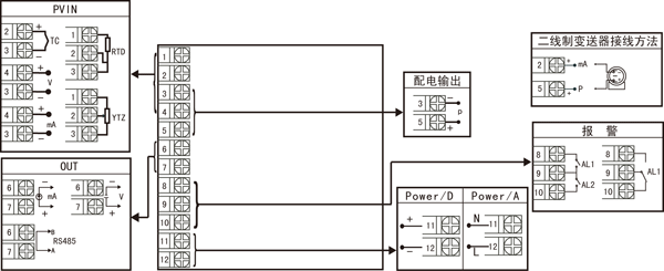 | A B C D E F H | 160*80*110mm(橫式) 80*160*110mm(豎式) 96*96*110mm(方式) 96*48*110mm(橫式) 48*96*110mm(豎式) 72*72*110mm(方式) 48*48*110mm(方式) | 00 01 02 03 04 05 06 07 08 09 10 11 12 13 14 15 16 17 18 19 20 21 22 23 24 25 26 27 28 29 30 31 32 33 34 35 55 | 熱電偶B(400~1800℃) 熱電偶S(0~1600℃) 熱電偶K(0~1300℃) 熱電偶E分度(0~1000℃) 熱電偶T分度(-200.0~400.0℃) 熱電偶J分度(0~1200℃) 熱電偶R分度(0~1600℃) 熱電偶N分度(0~1300℃) 熱電偶F2分度(700~2000℃) 熱電偶Wre3-25分度(0~2300℃) 熱電偶Wre5-26分度(0~2300℃) 熱電阻CU50(-50.0~150.0℃) 熱電阻CU53(-50.0~150.0℃) 熱電阻CU100(-50.0~150.0℃) 熱電阻PT100(-200.0~650.0℃) 熱電阻BA1(-200.0.0~600.0℃) 熱電阻BA2(-200.0~600.0℃) 線性電阻0~500Ω(-1999~9999) 遠(yuǎn)傳電阻0-350Ω (-1999~9999) 遠(yuǎn)傳電阻30-350Ω (-1999~9999) 0~20mV (-1999~9999) 0~40mV (-1999~9999) 0~100mV (-1999~9999) 內(nèi)部保留 內(nèi)部保留 0~20mA (-1999~9999) 0~10mA (-1999~9999) 4~20mA (-1999~9999) 0~5V (-1999~9999) 1~5V (-1999~9999) 內(nèi)部保留 0~10V (-1999~9999)(不可切換) 0~10mA開方 (-1999~9999) 4~20mA開方 (-1999~9999) 0~5V開方 (-1999~9999) 1~5V開方 (-1999~9999) 全切換 |