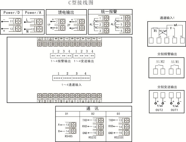 X | 無輸出 RS-485通迅接口(Modbus) RS232通迅接口(Modbus) RS232C打印接口 | ||