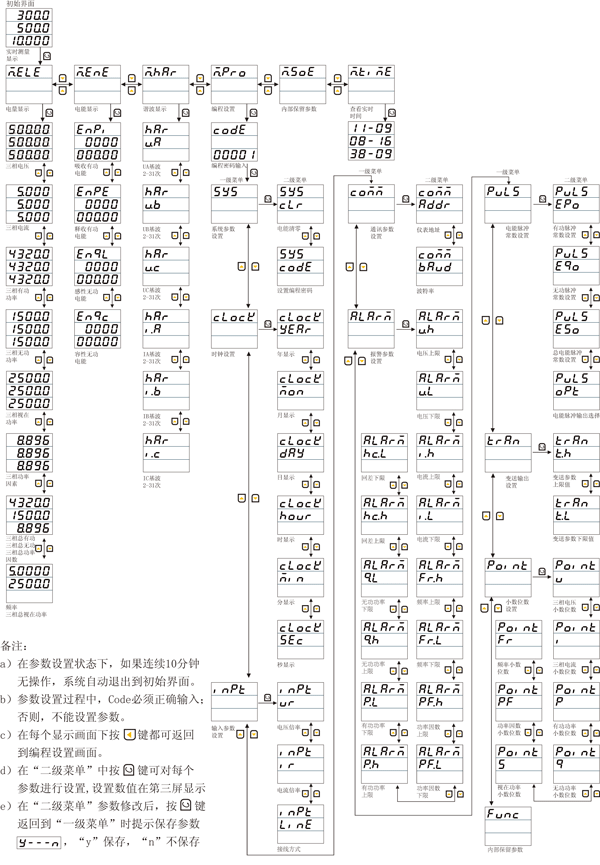 | A C | 160*80*130mm 96*96*130mm | I V W Ep E3P War Eq VA Es COS Hz Har | 三相交流電流 三相交流電壓 三相有功功率 三相有功電能 三相有功平衡功率 三相無(wú)功功率 三相無(wú)功電能 三相視在功率 三相視在電能 三相功率因數(shù) 三相工頻周波 三相諧波 |