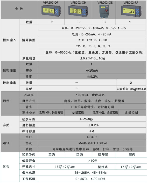 VPR202系列流量積算儀表是以先進的CPU為核心,基于智能化、數字化、網絡化設計思想,輔以大規模集成電路、信號智能調理、SmartBus總線以及精致型結構設計技術的新型智能儀表。超薄設計,功耗低、精度高、通用性強、運行穩定、高性價比;可實現流量信號采集、顯示、記錄、補償、積算、報警、通訊等功能;采用RS-232C/RS-485通訊接口,支持標準MODBUS-RTU協議,可方便實現遠程監控。