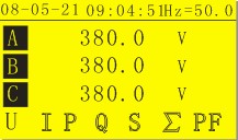顯示三相電流、三相電壓、三相有功功率、三相無功功率、三相視在功率、功率因素、頻率、累積電能等電量參數(shù)。