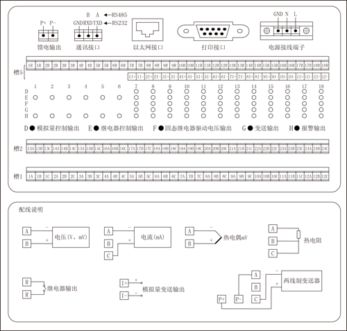 | 備注1:在24路輸入通道數中,最多帶8路PID控制輸入。 備注2:模擬量控制輸出通道數+繼電器控制輸出+固態繼電器驅動電壓輸出≤8; 控制輸出通道數+變送輸出通道數+報警輸出通道數≤18; |