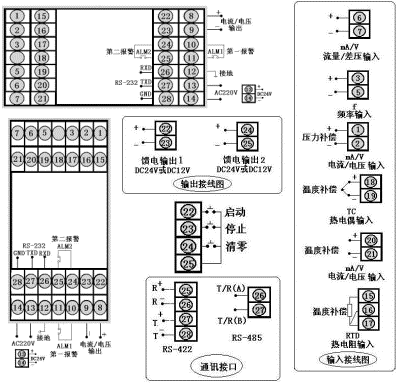 補償輸入5位流量積算控制儀,流量輸入類型為4~20mA,壓力補償輸入類型為4~20mA,溫度補償輸入類型為4~20mA,4~20mA變送輸出,無報警輸出。