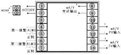 輸出方式為繼電器正反轉輸出,PV輸入類型為4~20