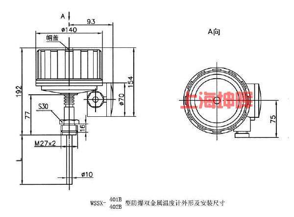 | WSSX-410B | -80-+40 -40-+80 0-50 0-100 0-150 0-200 0-300 0-400 0-500 | 1.5 | 1Cr18NI9Ti 304 316 316L 哈氏C-276 H.AIIoyc-276 | 75 | 無固定裝置螺紋 |