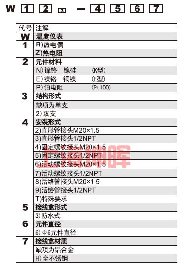 WZ系列可卸式隔爆熱電阻型號(hào)表示