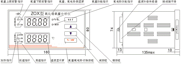 ZO型氧化鋯氧氣含量分析儀盤裝式顯示表外形結構圖
