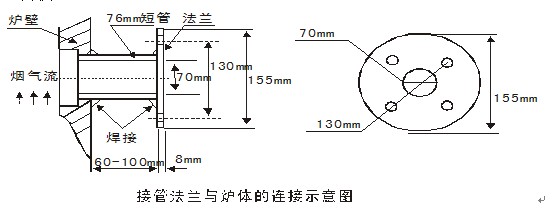 預(yù)先加工好帶法蘭的設(shè)備短接管,孔徑為Φ76,長度約為400mm。按要求選好取樣位置(爐壁或管道),開一個Φ76 的孔,將短接水平焊接到爐壁上,焊接時要保證焊接處不漏氣。把檢測器插入短接管中,接管法蘭與檢測器法蘭之間墊上2—4mm 厚的石棉墊,旋緊4 個螺栓,使其不漏氣即可。