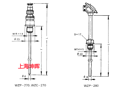 | 鉑熱電阻 | WZP-270 | Pt100 (BA1BA2)* | -200~420 | 不銹鋼 1Cr18Ni9Ti | 95 105 130 155 205 | 40 50 75 100 150 | <15 |