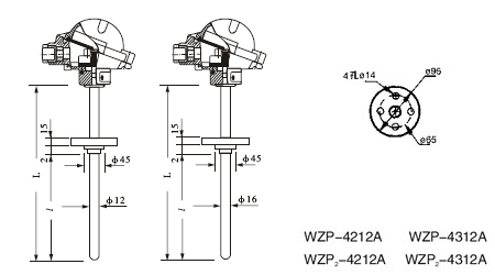 | WZP-4212A | Pt100 | -200~500 | A級或B級 | ≤45 | 225 250 300 350 400 450 550 650 900 1150 | 防濺式 |