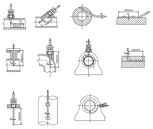 3、安裝使用方便:鎧裝熱電偶材料可在其外徑5倍的圓柱體上繞5圈并可在多處位置彎曲。