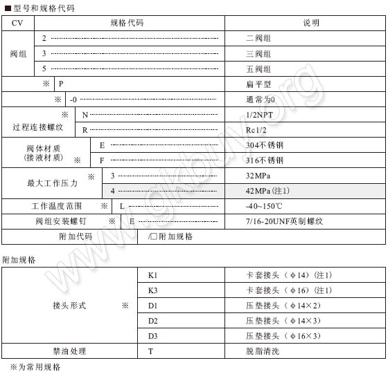 CV系列閥組有扁平型二閥組、三閥組、五閥組及柱狀截止閥(帶排放塞或不帶排放塞)。扁平型三閥組、五閥組用于差壓變送器及其一體化組裝;扁平型二閥組及柱狀截止閥用于壓力變送器及其一體化組裝。CV系列閥組也可用于其他需要進行壓力控制的儀表裝置。
