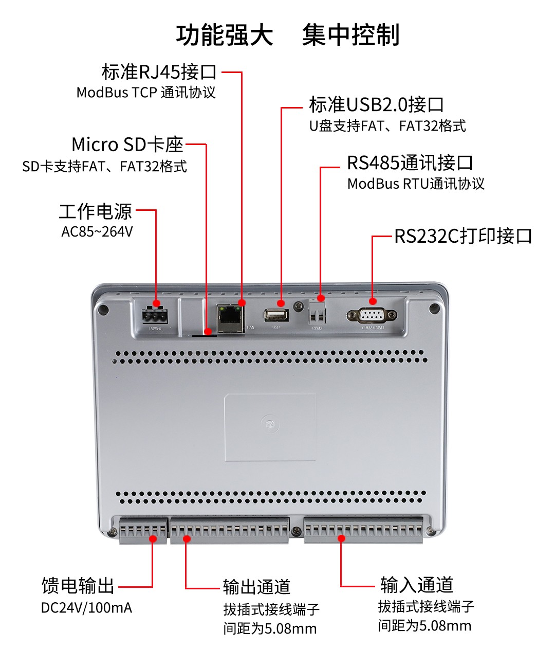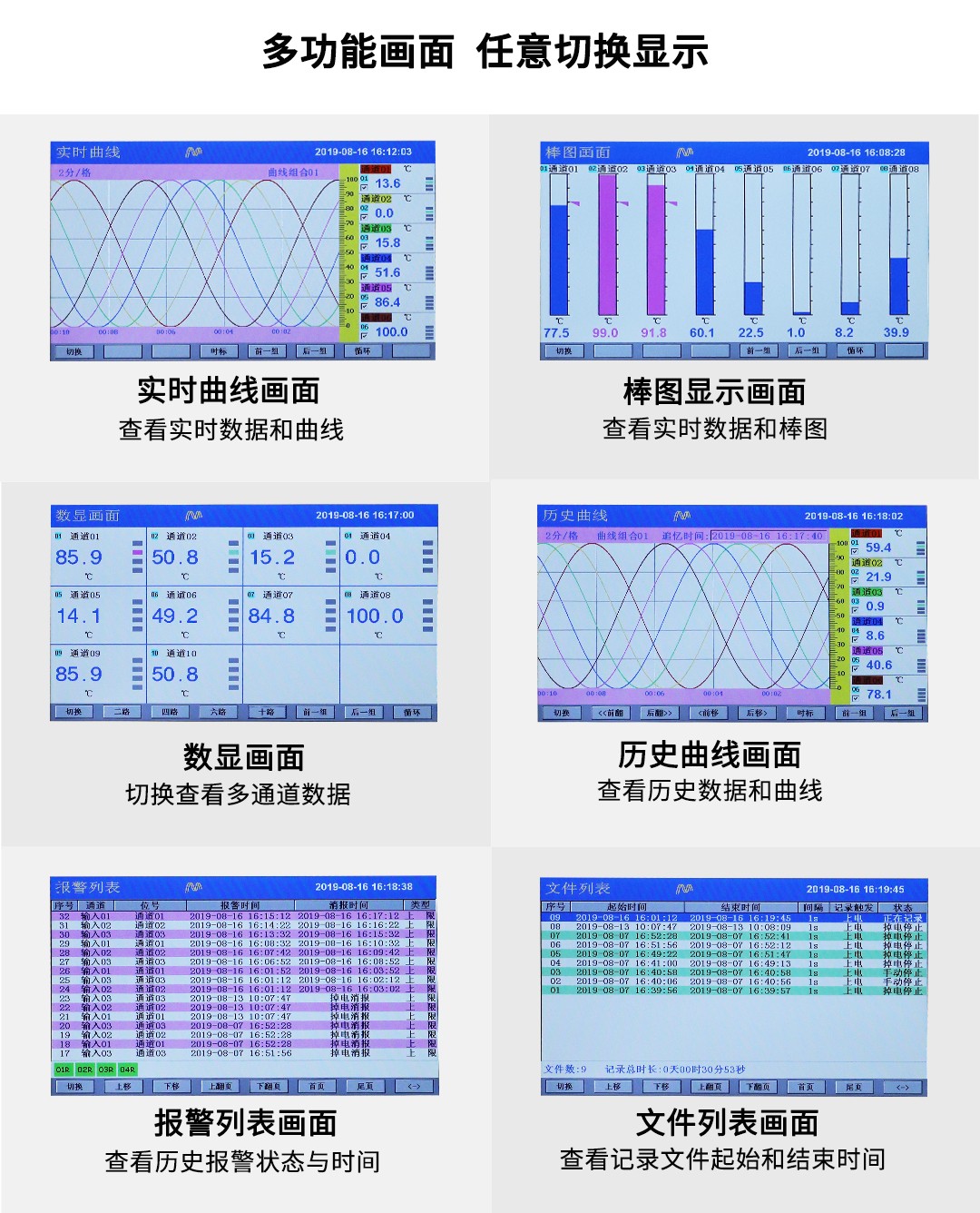 NHR-T910系列超薄大屏無紙記錄儀采用新型大規模集成電路,對輸入、輸出、電源、信號采取可靠保護和強抗干擾設計。10路萬能信號輸入(可組態選擇輸入:標準電壓、標準電流、熱電偶、熱電阻、頻率、毫伏等)。可帶4路報警輸出,1個饋電輸出,RS485通訊接口,以太網接口,微型打印機接口和USB接口,SD卡插座。