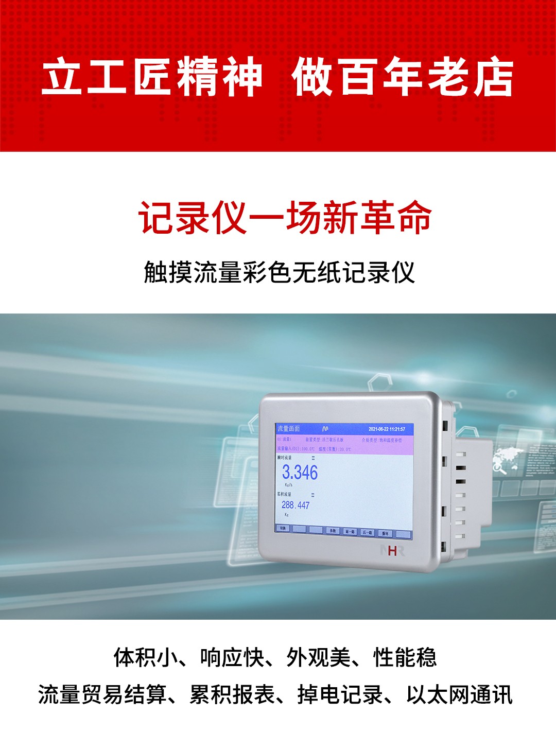 NHR-T560系列觸摸彩色流量無紙記錄儀采用新型大規模集成電路,對輸入、輸出、電 源、信號采取可靠保護和強抗干擾設計。