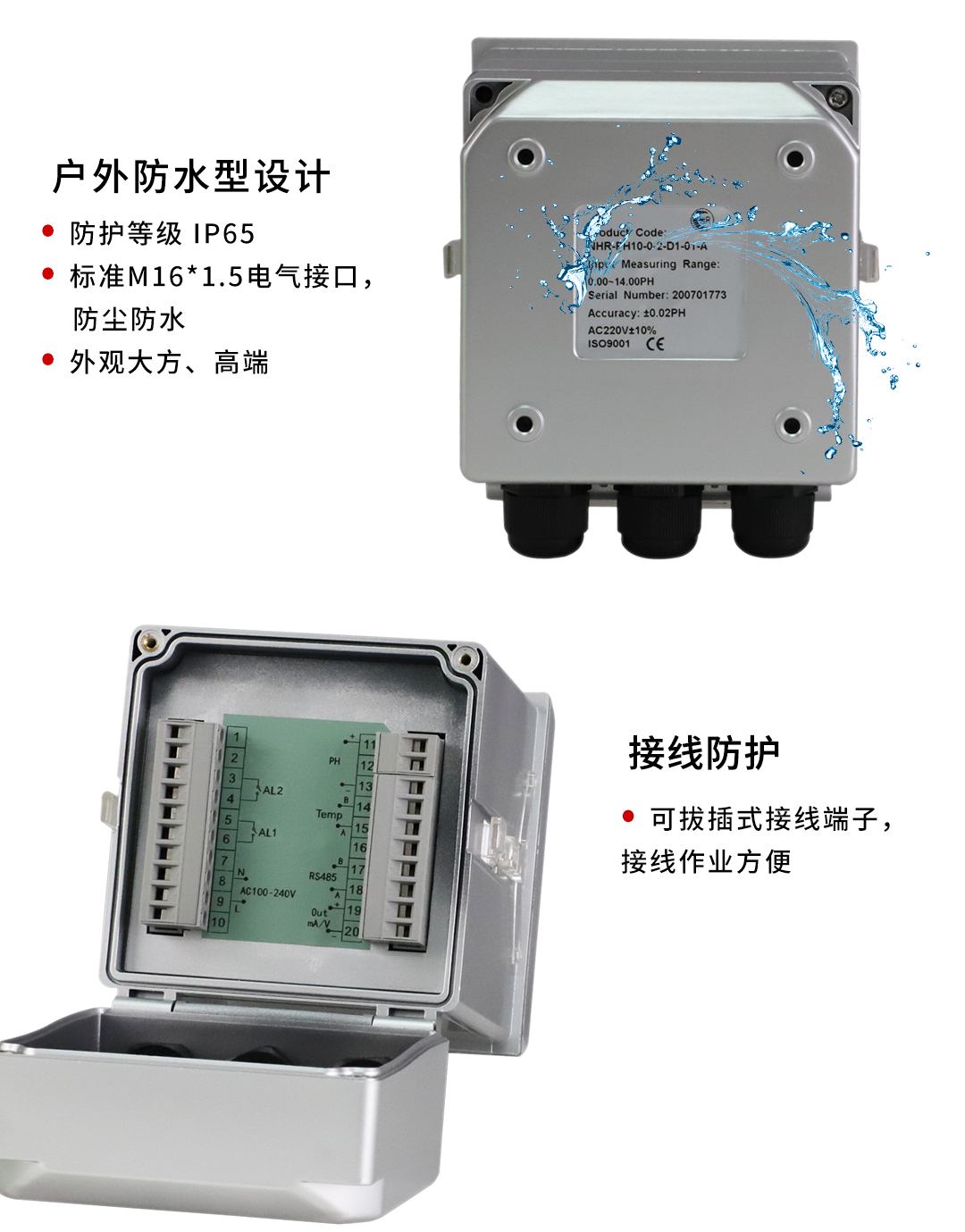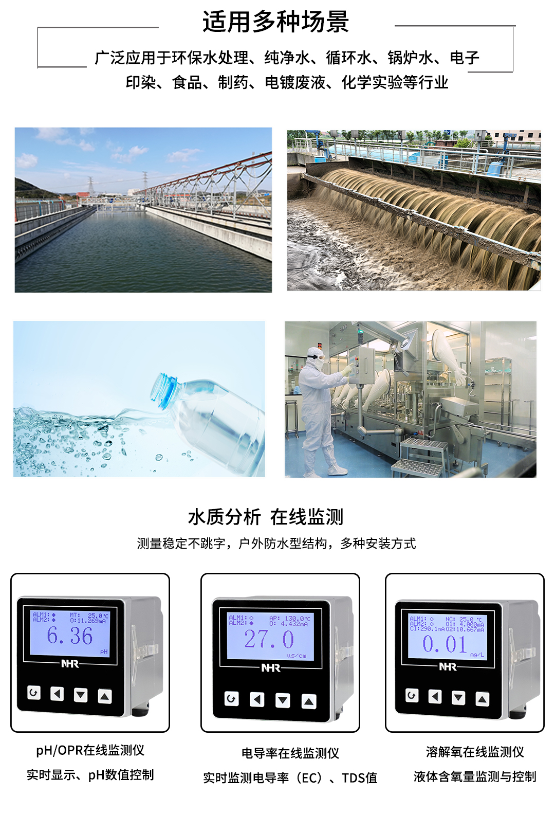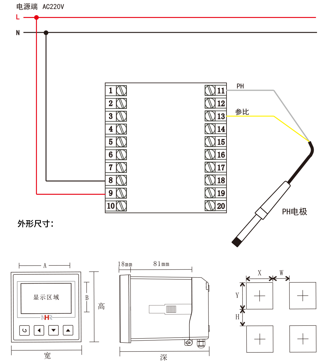 NHR-PH10系列pH/ORP在線監測儀是一款智能在線化學分析儀器(酸度計、pH計、pH酸度計、酸度計phs-25),具備一路RS485通訊輸出、一路模擬信號輸出和兩路繼電器報警輸出。