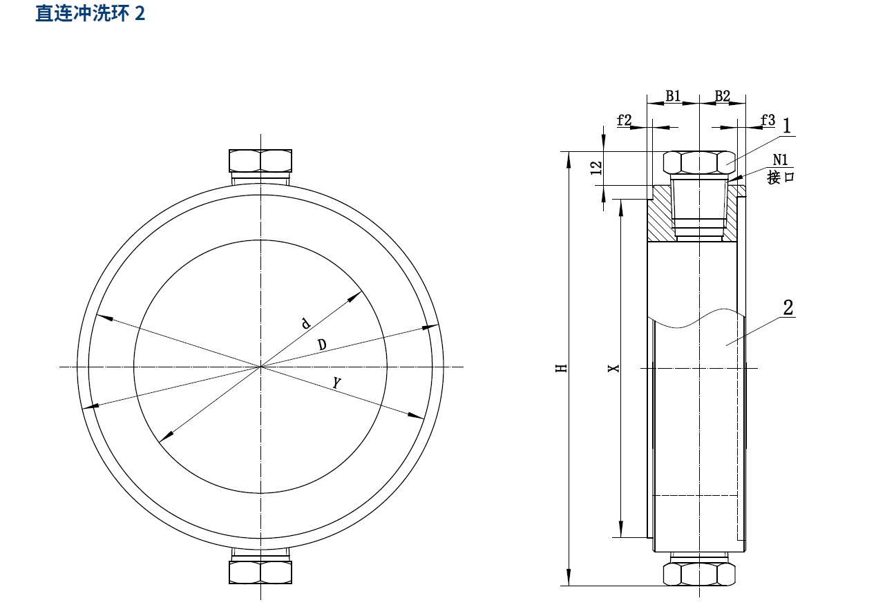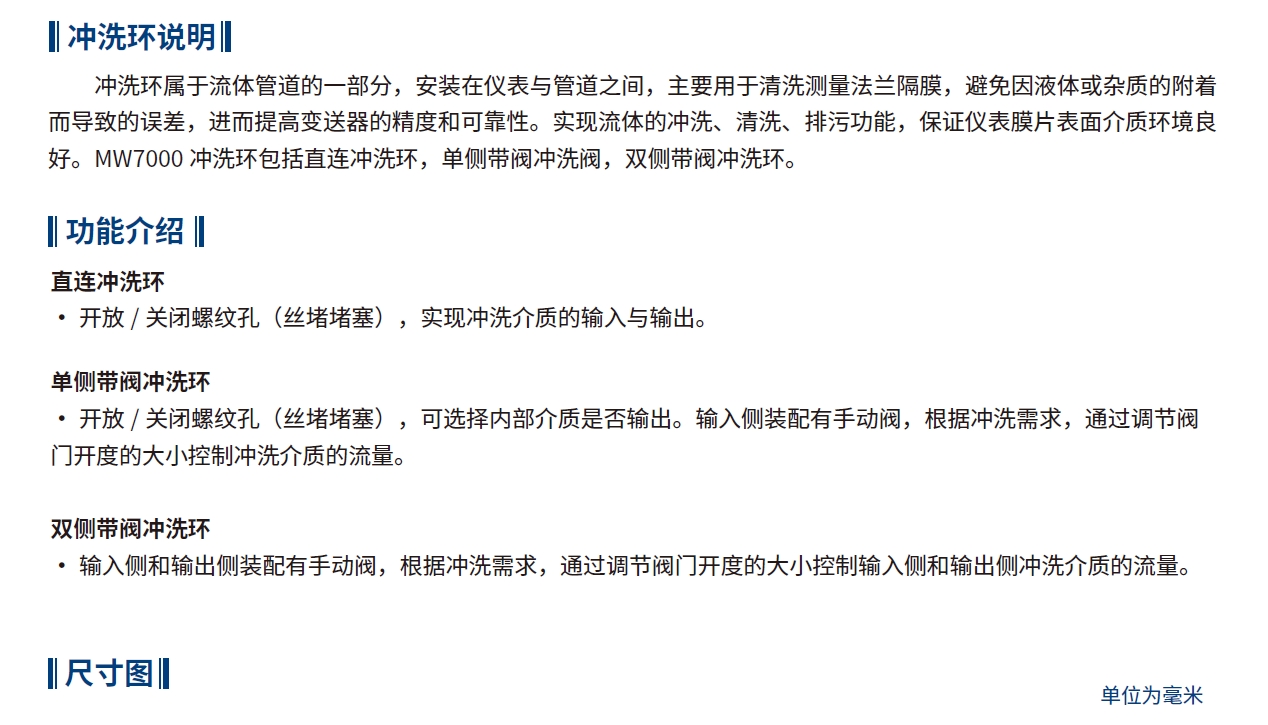 沖洗環屬于流體管道的一部分,安裝在儀表與管道之間,主要用于清洗測量法蘭隔膜,避免因液體或雜質的附著而導致的誤差,進而提高變送器的精度和可靠性。