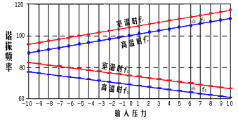 當(dāng)加有靜壓(工作壓力)時,兩形狀、尺寸、材質(zhì)完全一致的諧振梁形變相同, 故頻率變化也一致,故偏差自動清除(公式和圖類似溫度影響)。