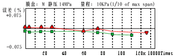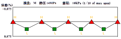 接液膜片與膜盒本體采用獨(dú)創(chuàng)的波紋加工技術(shù),使外部壓力增大到某一數(shù)值時, 接液膜片能與本體完全接觸,硅油傳遞給傳感器的壓力不再隨外力的增加而增 加,從而達(dá)到對傳感器的保護(hù)作用。(圖4)、(圖5)所示為EJA過壓特性。